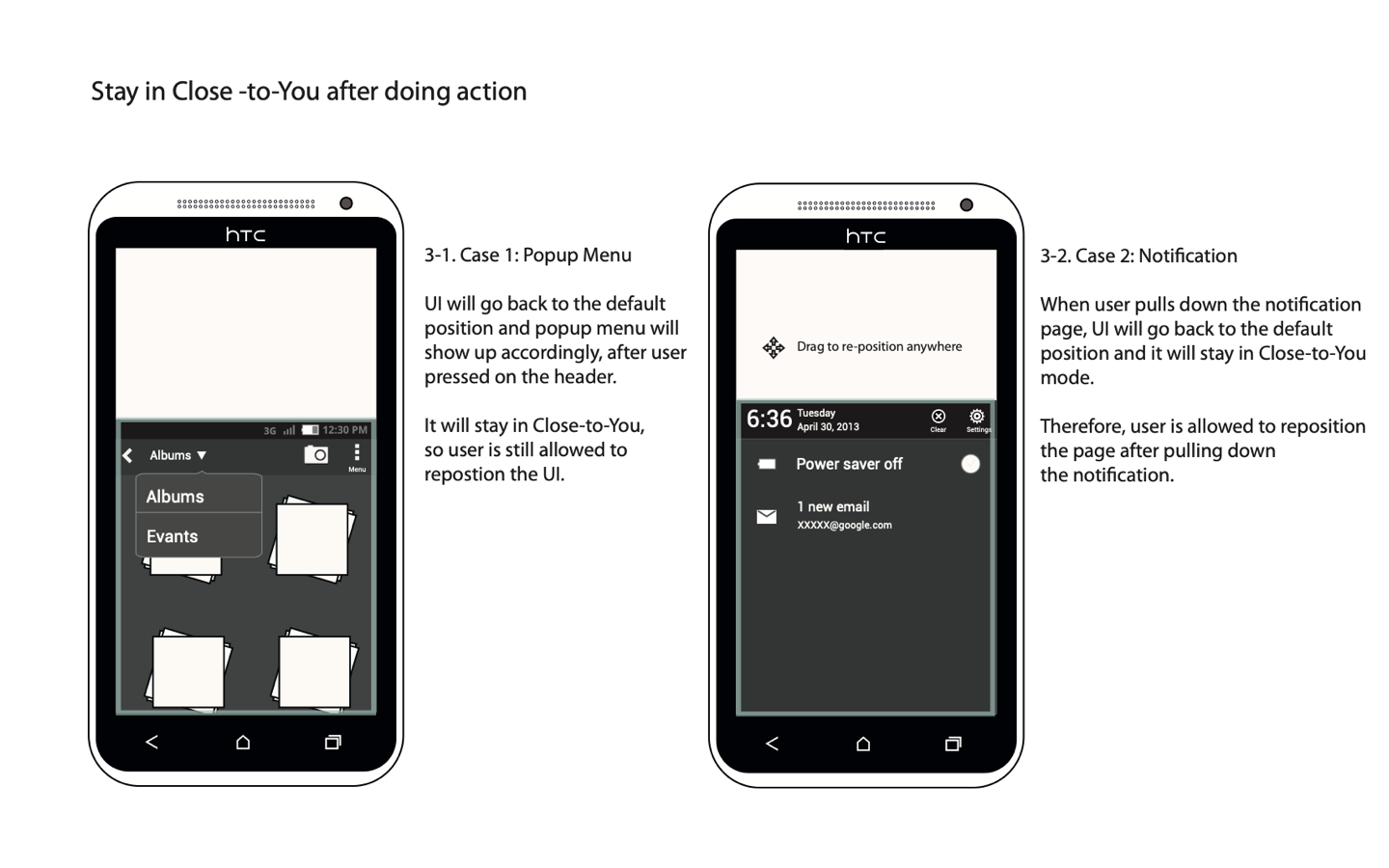 (1) Defined concept and gesture of interaction, turned the core insight from user study to design solution; (2) Created design documents including information architectures, personas, and wireframes; (3) Communicated design details through wireframes with development teams; (4) Acquired patent of one hand control mode.